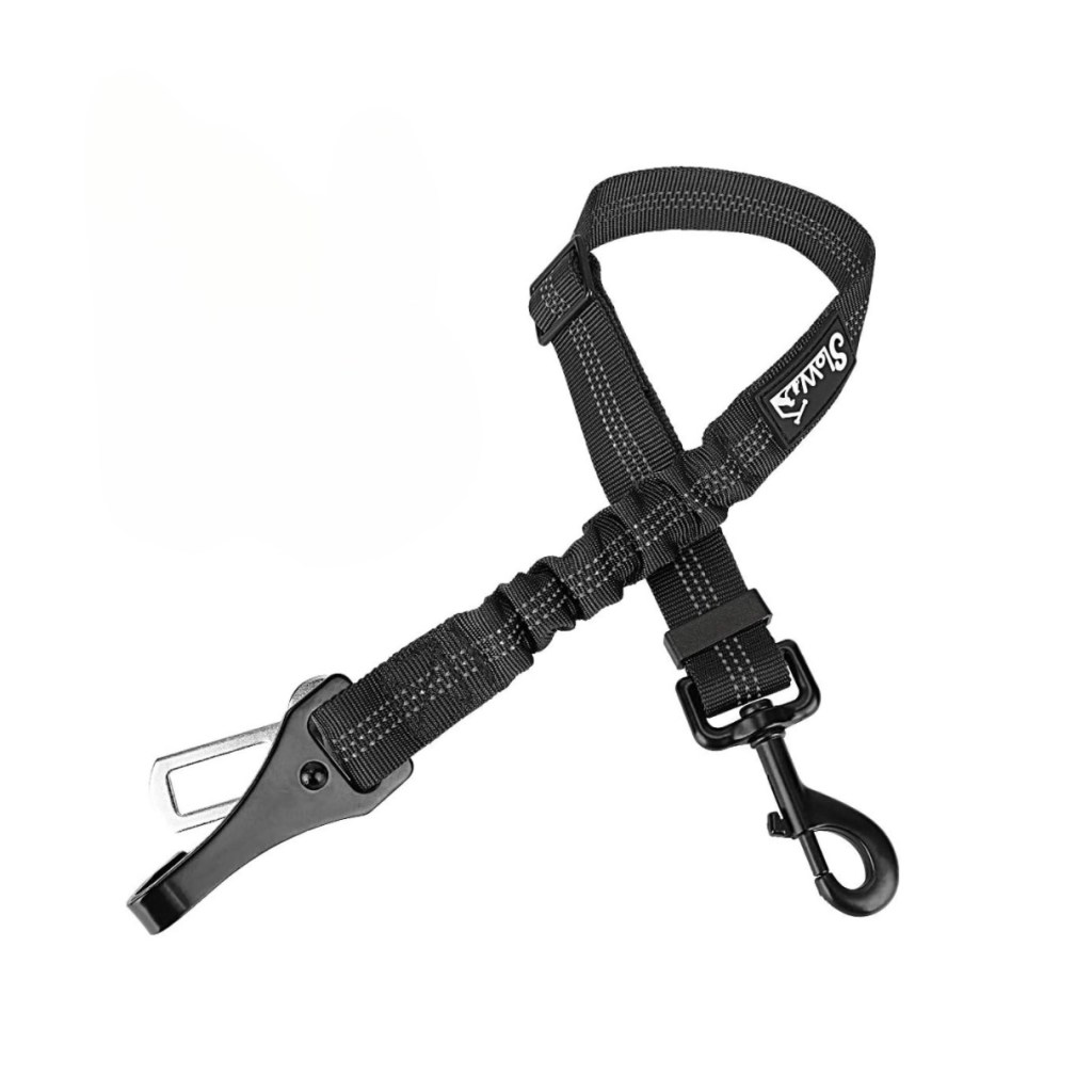 We highly recommend dog seat belts like the one we have listed on our product page. You can click here to view the product directly on Amazon. If you have a rambunctious dog and you are afraid of them getting tangled up while you drive, consider getting a dog crate for your car.